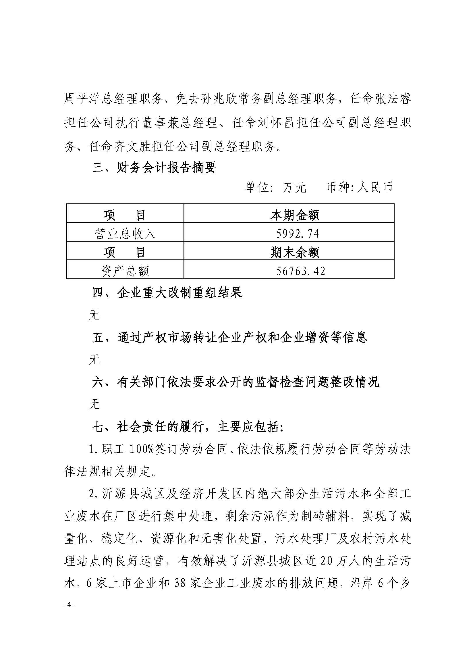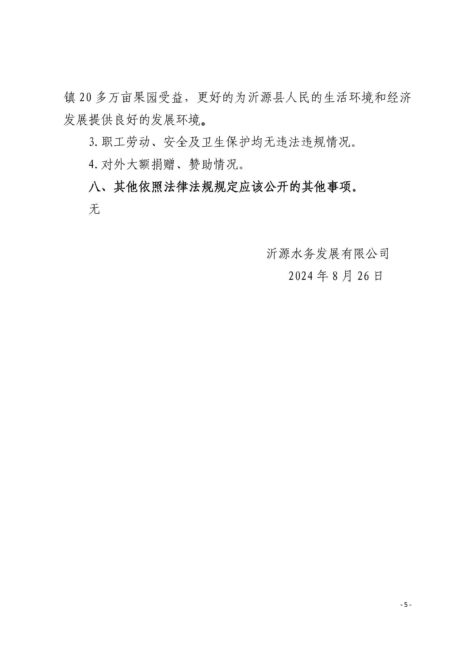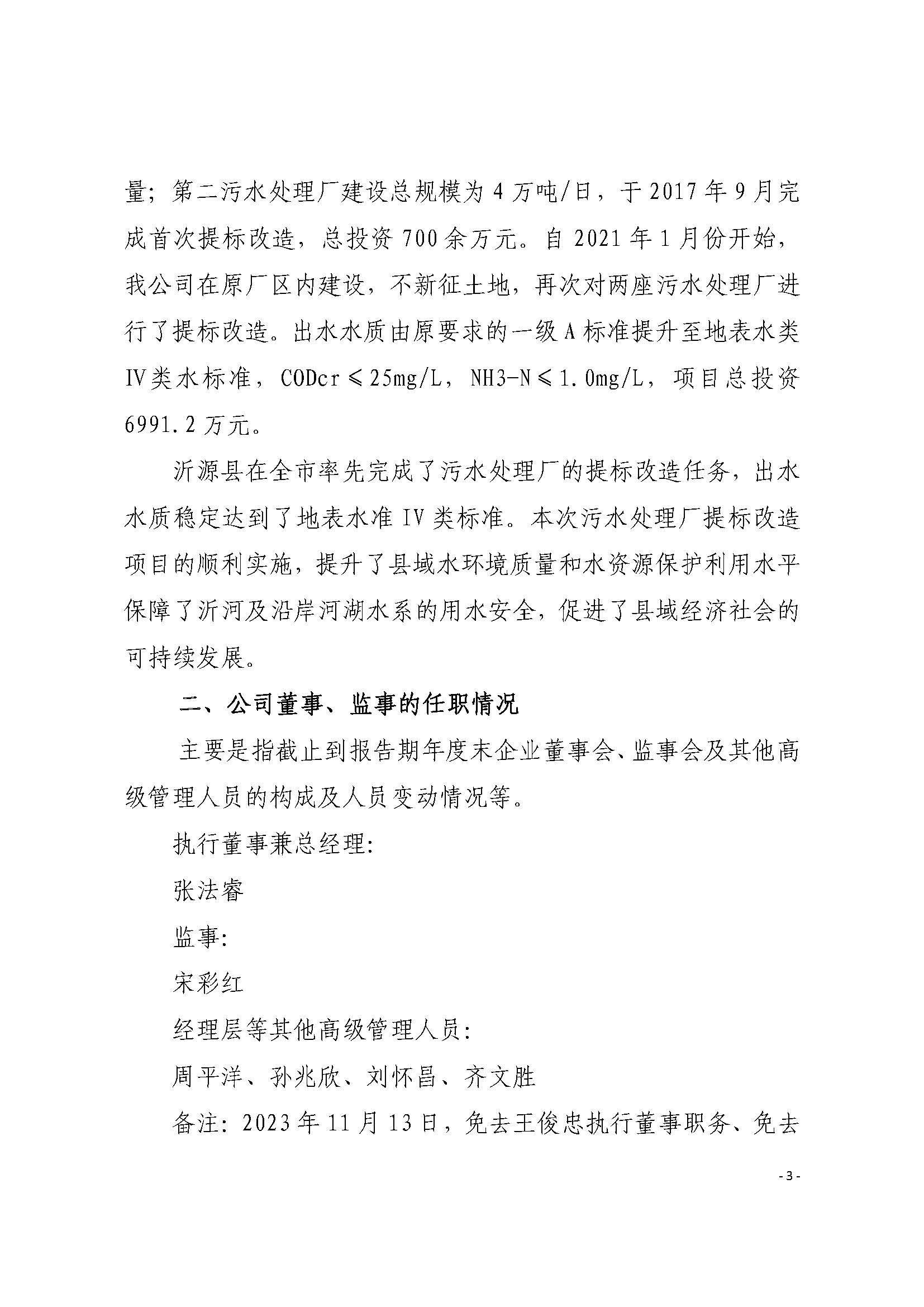 沂源水务发展有限公司2023年度重大信息公告