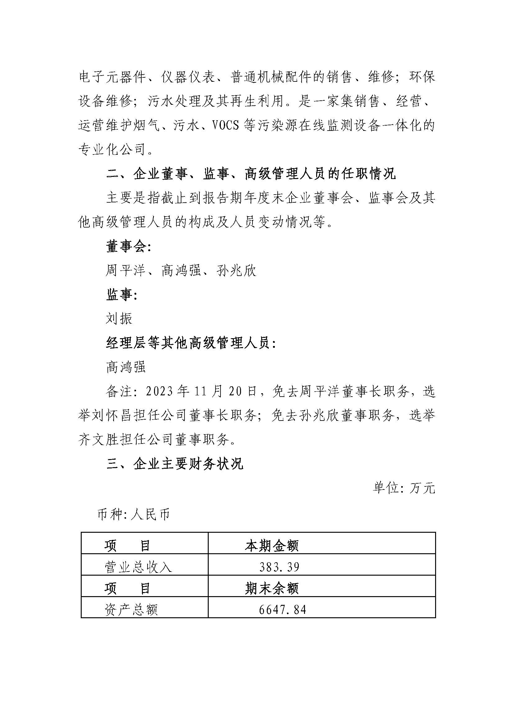山东赫然环境科技有限公司2023年度重大信息公告