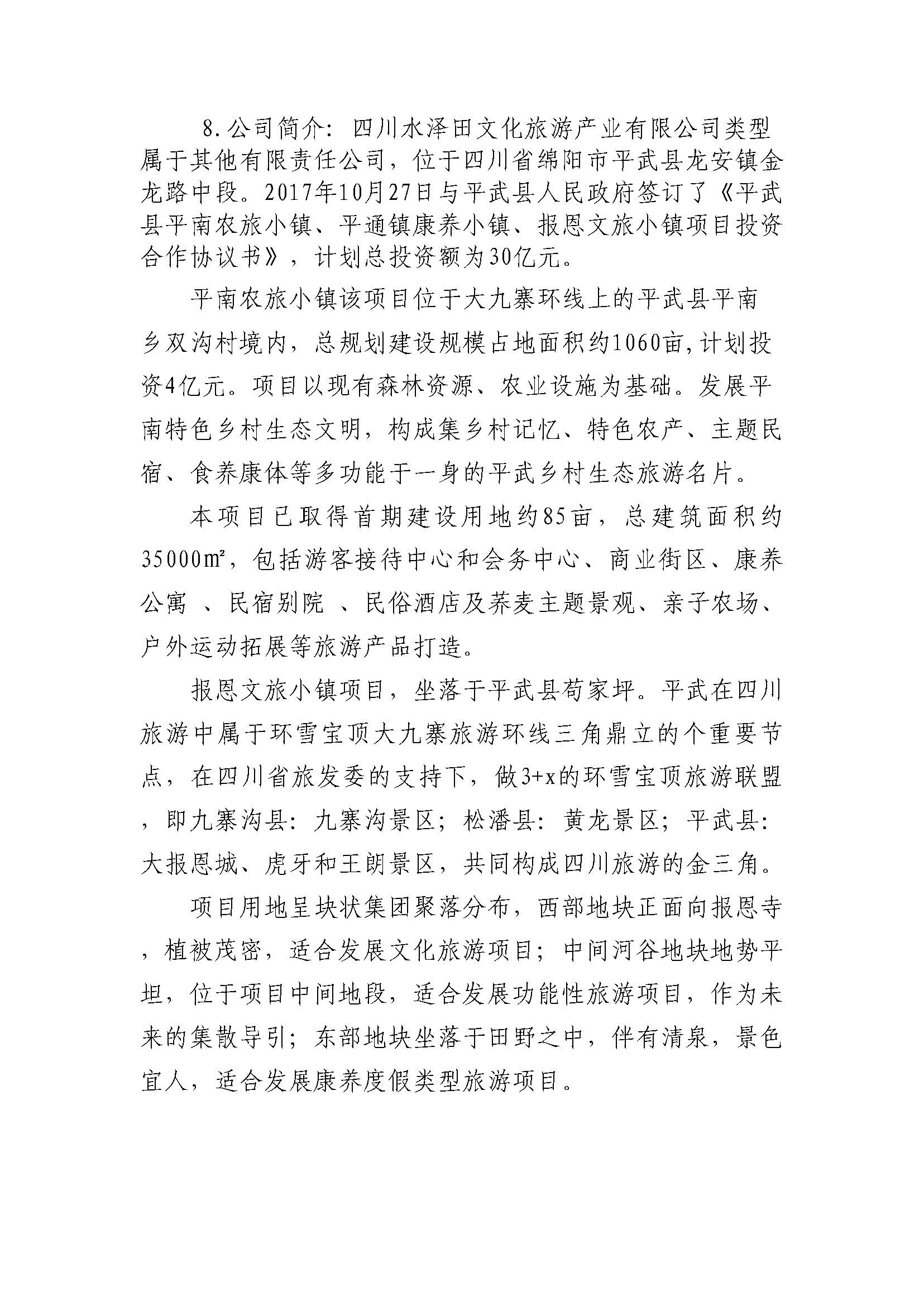 四川水泽田文化旅游产业有限公司2023年度重大信息公告