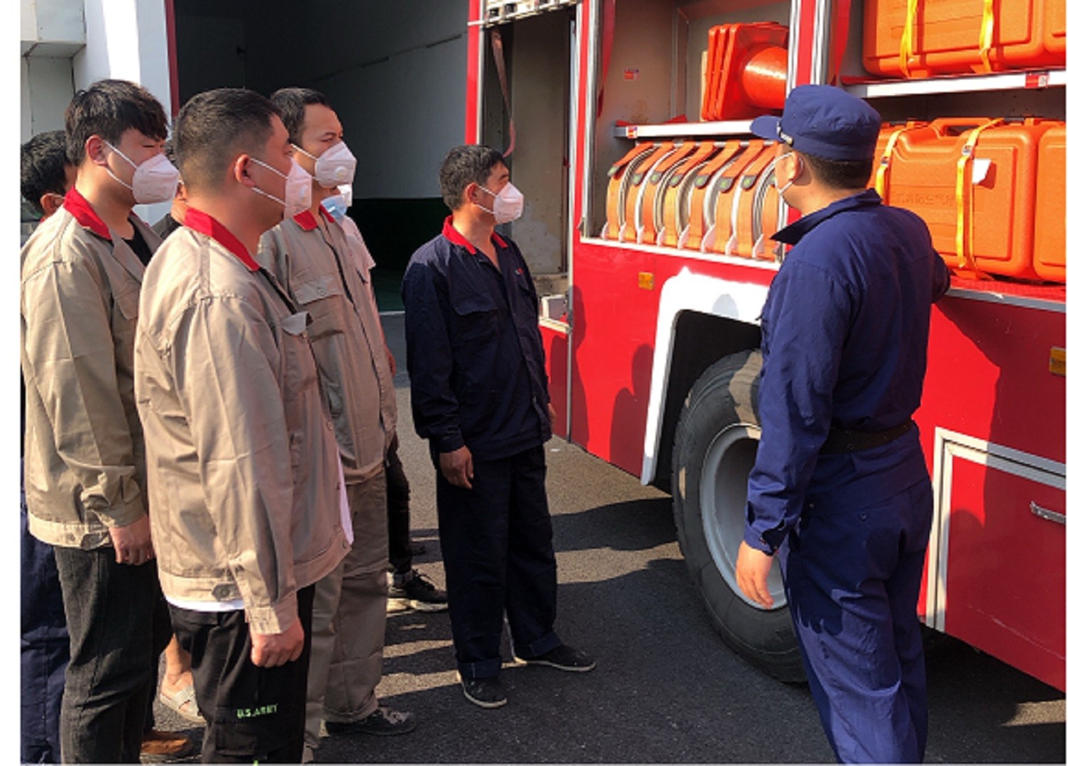 次日,公司组织员工走进园区消防救援大队参观学习。听取了消防救援大队大队长对消防救援站队伍编制、车辆配备、日常训练、出险救援的情况介绍。参观了消防车辆和随车器材装备,切身体验了战斗服的穿戴,了解了各类消防车的名称、功能、操作事项及各类救援器材在灭火救援任务中的功能和使用方法等情况,取得了良好的效果。